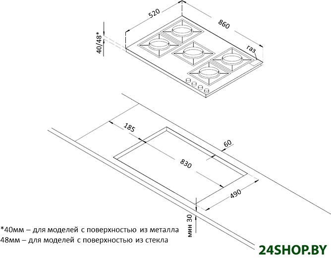 - Тип варочной поверхности: газовая