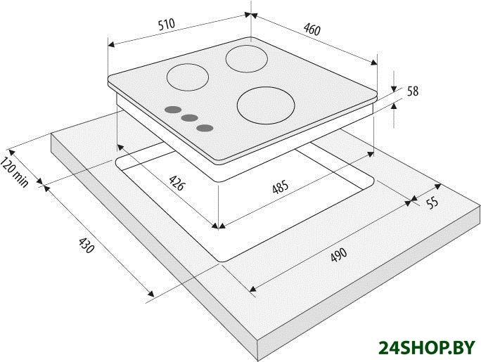 - Количество конфорок: 3