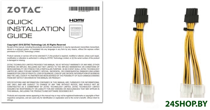 - Комплект поставки: кабель питания двойной 6-pin на 8-pin (2 шт), документация