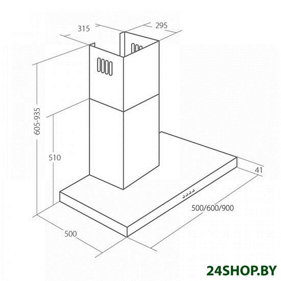 Ширина встраивания является определяющим фактором для выбора кухонной вытяжки. Модель вытяжки по размеру должна соответствовать рабочей поверхности или быть немного шире (например, если кухонная плита по ширине - 60 см, то вытяжку можно покупать шириной как 60, так и 90 см). Кухонная вытяжка будет работать исправно лишь при условии, если воздухоприемный зонт полностью закроет плоскость плиты. В таком случае утечка загрязненного воздуха будет минимальной.