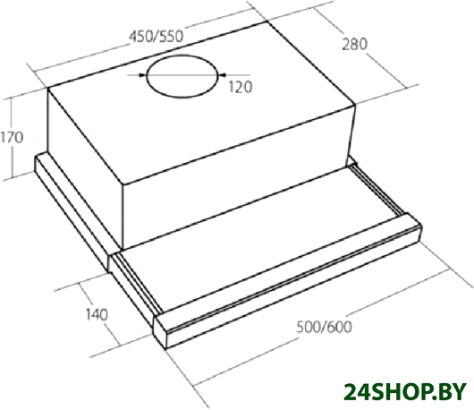 Ширина встраивания является определяющим фактором для выбора кухонной вытяжки. Модель вытяжки по размеру должна соответствовать рабочей поверхности или быть немного шире (например, если кухонная плита по ширине - 60 см, то вытяжку можно покупать шириной как 60, так и 90 см). Кухонная вытяжка будет работать исправно лишь при условии, если воздухоприемный зонт полностью закроет плоскость плиты. В таком случае утечка загрязненного воздуха будет минимальной.