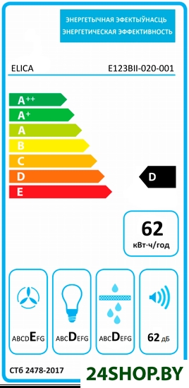 - Годовой расход электроэнергии: 62 кВт·ч/год