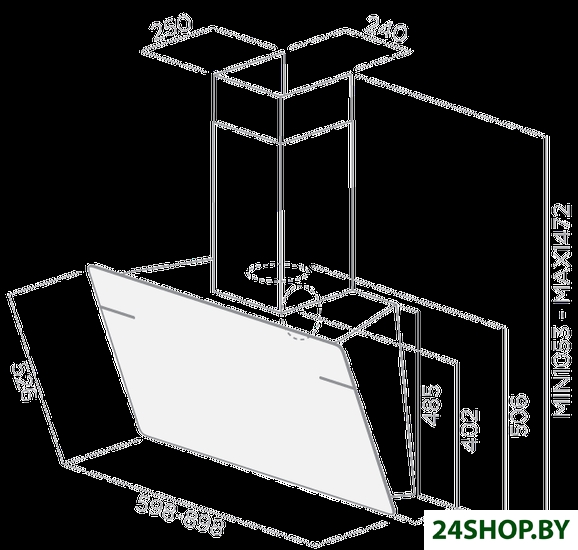 Ширина встраивания является определяющим фактором для выбора кухонной вытяжки. Модель вытяжки по размеру должна соответствовать рабочей поверхности или быть немного шире (например, если кухонная плита по ширине - 60 см, то вытяжку можно покупать шириной как 60, так и 90 см). Кухонная вытяжка будет работать исправно лишь при условии, если воздухоприемный зонт полностью закроет плоскость плиты. В таком случае утечка загрязненного воздуха будет минимальной.