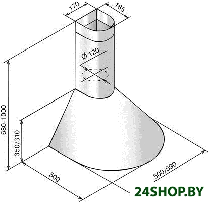 - Диаметр воздуховода: 120 мм