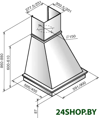 - Диаметр воздуховода: 150 мм