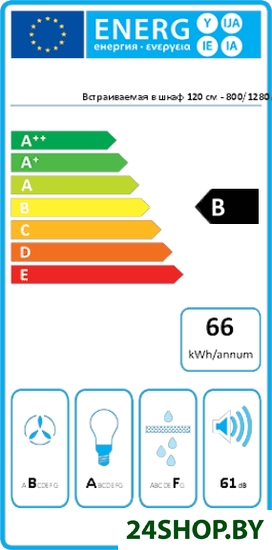 - Годовой расход электроэнергии: 66 кВт·ч/год