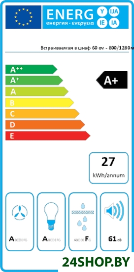 - Годовой расход электроэнергии: 27 кВт·ч/год