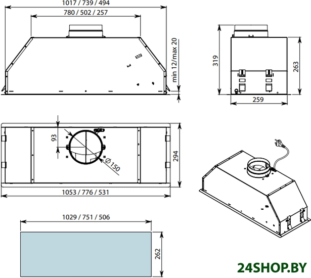 - Монтаж: для встраивания