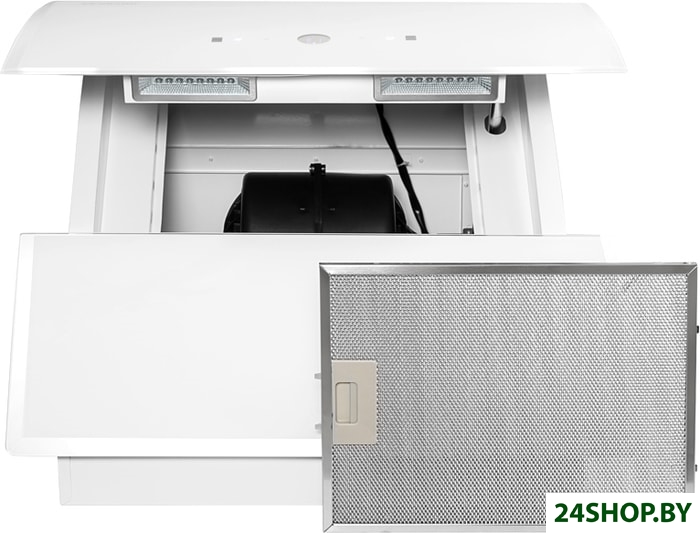 - Дополнительные функциональные особенности: Перед началом работы вытяжки, фронтальная панель автоматически открывается.