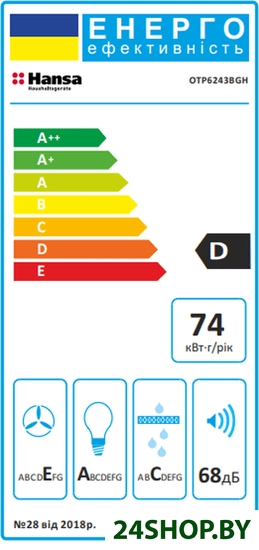 - Годовой расход электроэнергии: 74 кВт·ч/год