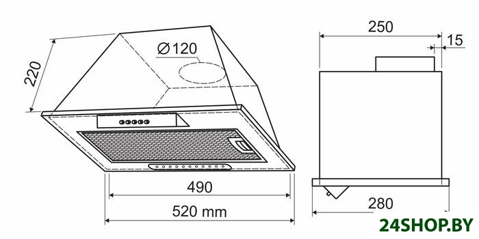- Диаметр воздуховода: 120 мм