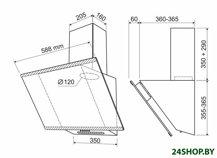 - Диаметр воздуховода: 120 мм