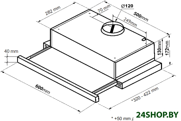 - Диаметр воздуховода: 120 мм