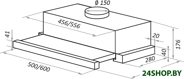 Ширина встраивания является определяющим фактором для выбора кухонной вытяжки. Модель вытяжки по размеру должна соответствовать рабочей поверхности или быть немного шире (например, если кухонная плита по ширине - 60 см, то вытяжку можно покупать шириной как 60, так и 90 см). Кухонная вытяжка будет работать исправно лишь при условии, если воздухоприемный зонт полностью закроет плоскость плиты. В таком случае утечка загрязненного воздуха будет минимальной.