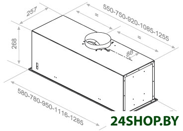 Ширина встраивания является определяющим фактором для выбора кухонной вытяжки. Модель вытяжки по размеру должна соответствовать рабочей поверхности или быть немного шире (например, если кухонная плита по ширине - 60 см, то вытяжку можно покупать шириной как 60, так и 90 см). Кухонная вытяжка будет работать исправно лишь при условии, если воздухоприемный зонт полностью закроет плоскость плиты. В таком случае утечка загрязненного воздуха будет минимальной.