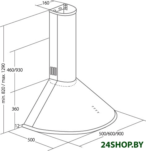 Ширина встраивания является определяющим фактором для выбора кухонной вытяжки. Модель вытяжки по размеру должна соответствовать рабочей поверхности или быть немного шире (например, если кухонная плита по ширине - 60 см, то вытяжку можно покупать шириной как 60, так и 90 см). Кухонная вытяжка будет работать исправно лишь при условии, если воздухоприемный зонт полностью закроет плоскость плиты. В таком случае утечка загрязненного воздуха будет минимальной.