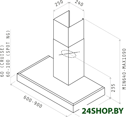 Ширина встраивания является определяющим фактором для выбора кухонной вытяжки. Модель вытяжки по размеру должна соответствовать рабочей поверхности или быть немного шире (например, если кухонная плита по ширине - 60 см, то вытяжку можно покупать шириной как 60, так и 90 см). Кухонная вытяжка будет работать исправно лишь при условии, если воздухоприемный зонт полностью закроет плоскость плиты. В таком случае утечка загрязненного воздуха будет минимальной.