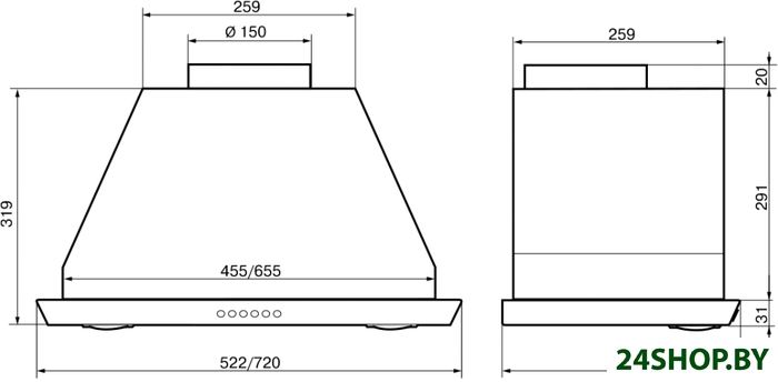 Ширина встраивания является определяющим фактором для выбора кухонной вытяжки. Модель вытяжки по размеру должна соответствовать рабочей поверхности или быть немного шире (например, если кухонная плита по ширине - 60 см, то вытяжку можно покупать шириной как 60, так и 90 см). Кухонная вытяжка будет работать исправно лишь при условии, если воздухоприемный зонт полностью закроет плоскость плиты. В таком случае утечка загрязненного воздуха будет минимальной.