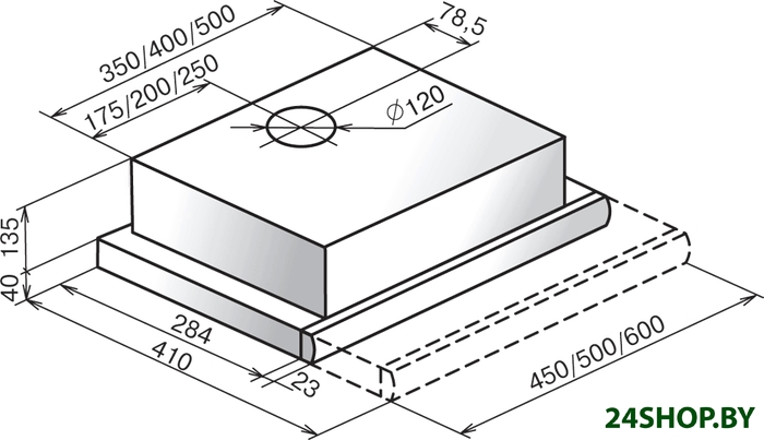 Ширина встраивания является определяющим фактором для выбора кухонной вытяжки. Модель вытяжки по размеру должна соответствовать рабочей поверхности или быть немного шире (например, если кухонная плита по ширине - 60 см, то вытяжку можно покупать шириной как 60, так и 90 см). Кухонная вытяжка будет работать исправно лишь при условии, если воздухоприемный зонт полностью закроет плоскость плиты. В таком случае утечка загрязненного воздуха будет минимальной.