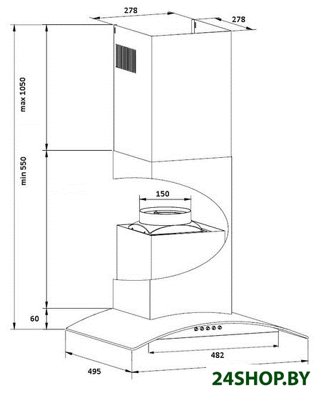 Ширина встраивания является определяющим фактором для выбора кухонной вытяжки. Модель вытяжки по размеру должна соответствовать рабочей поверхности или быть немного шире (например, если кухонная плита по ширине - 60 см, то вытяжку можно покупать шириной как 60, так и 90 см). Кухонная вытяжка будет работать исправно лишь при условии, если воздухоприемный зонт полностью закроет плоскость плиты. В таком случае утечка загрязненного воздуха будет минимальной.