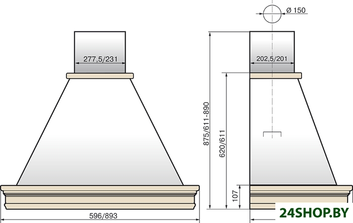 - Диаметр воздуховода: 150 мм