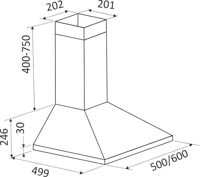 Ширина встраивания является определяющим фактором для выбора кухонной вытяжки. Модель вытяжки по размеру должна соответствовать рабочей поверхности или быть немного шире (например, если кухонная плита по ширине - 60 см, то вытяжку можно покупать шириной как 60, так и 90 см). Кухонная вытяжка будет работать исправно лишь при условии, если воздухоприемный зонт полностью закроет плоскость плиты. В таком случае утечка загрязненного воздуха будет минимальной.