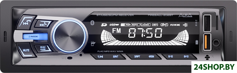 - Поддержка форматов: MP3, WMA, WAV, FLAC