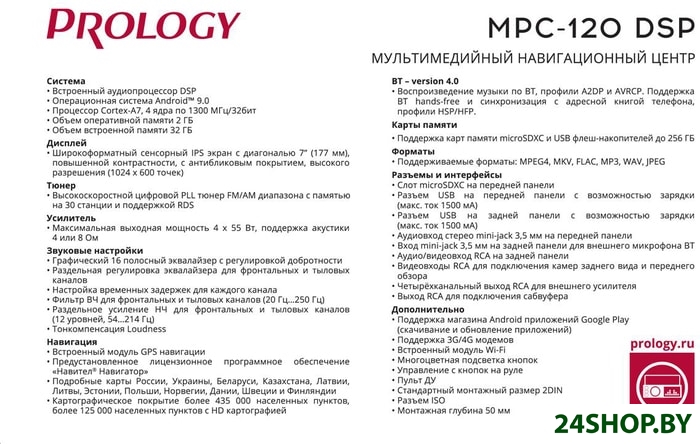 Описание и характеристики Prology MPC-120 DSP