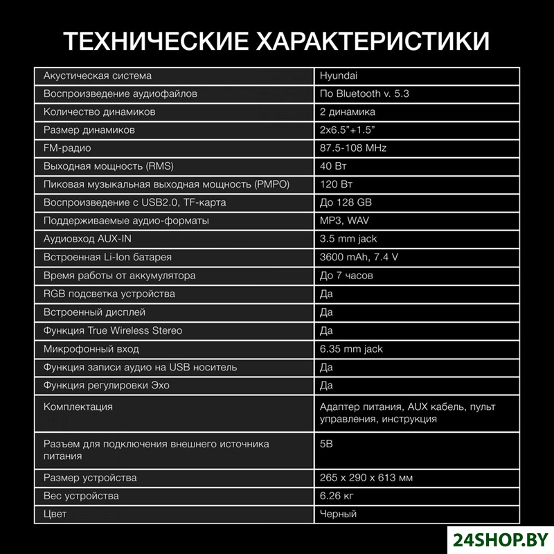 - Аудиовход: 3.5 мм