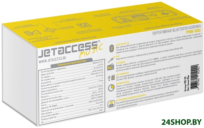 - Время работы от аккумулятора: 4 ч (при средней громкости)