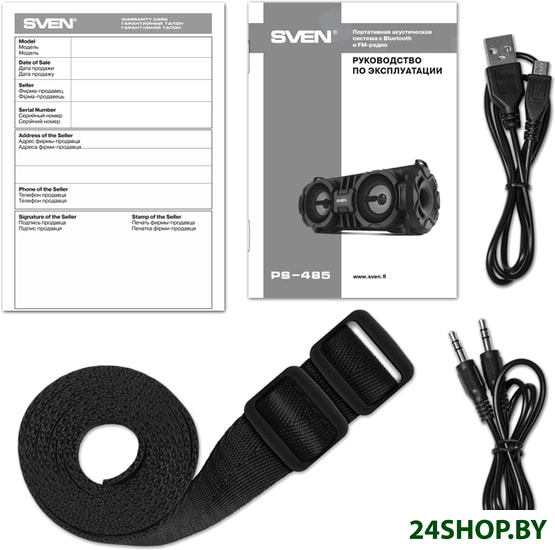 - Комплектация: - колонка;- аудиокабель;- кабель USB для зарядки;- ремень для переноски;- документация.