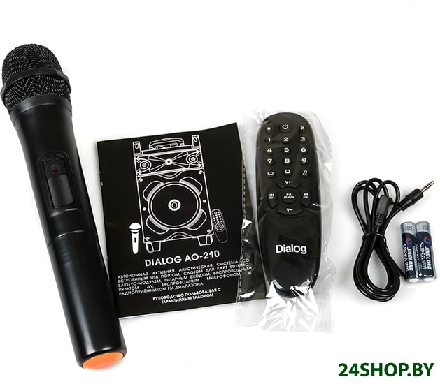 - Комплектация: - пульт ДУ- батарейки для пульта ДУ (2xAAA)- один радиомикрофон- аудиокабель (3.5 мм - 3.5 мм)- кабель питания- документация