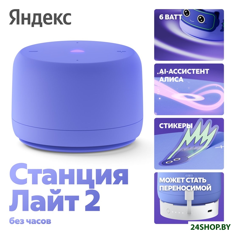 Описание и характеристики Яндекс Станция Лайт 2 без часов (фиолетовый)