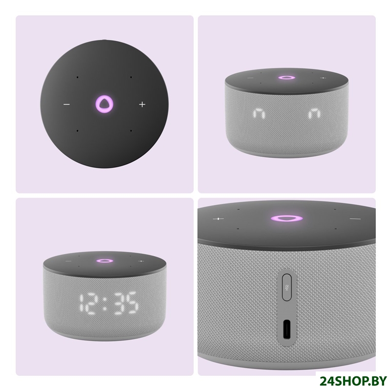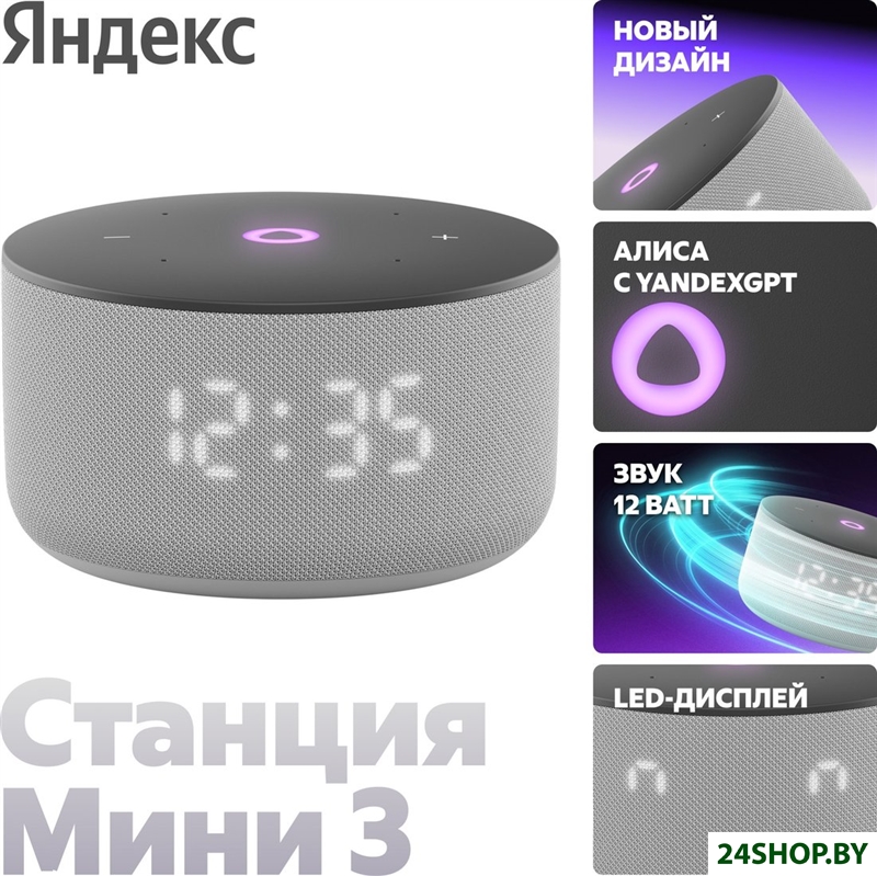 Описание и характеристики Яндекс Станция Мини 3 с часами (серый) (YNDX-00027GRY)