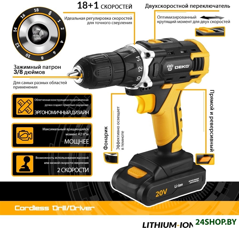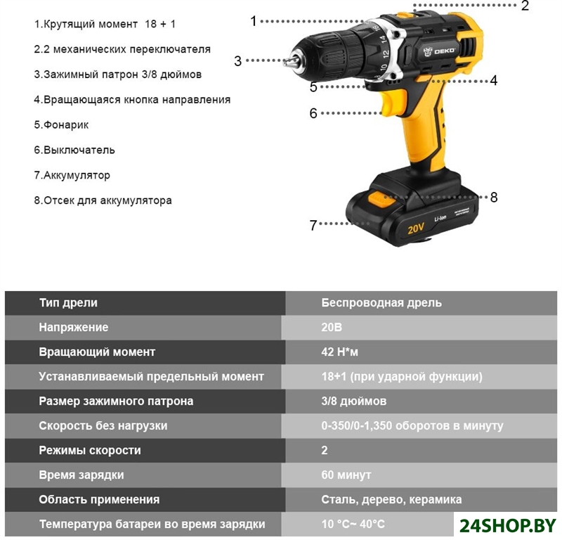 - Напряжение: 20 В