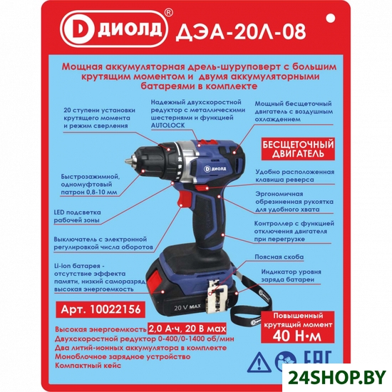 Описание и характеристики ДИОЛД ДЭА-20Л-08 (с 2-мя АКБ, кейс)