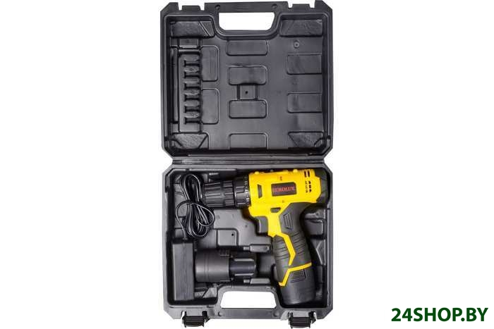 - Комплектация: Дрель-шуруповерт2 аккумулятораЗарядное устройствоПаспортКейс