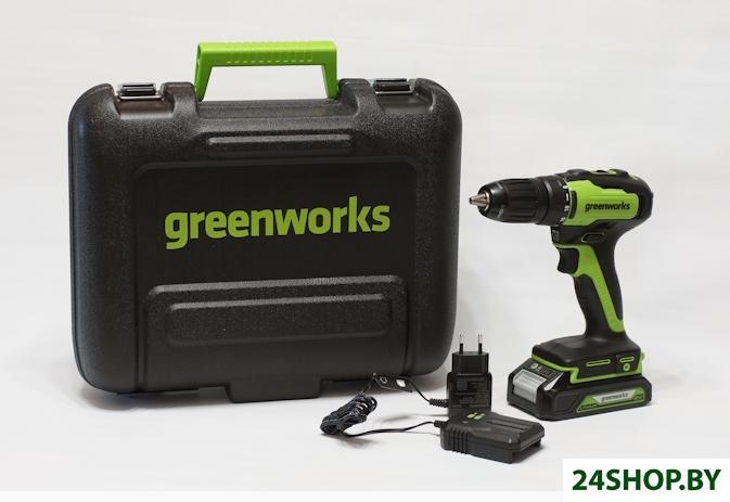 - Комплектация: Дрель-шуруповертАккумулятор Greenworks 24V 2АчЗарядное устройство слайдер (0,5 А)Пластиковый кейсРуководство по эксплуатации