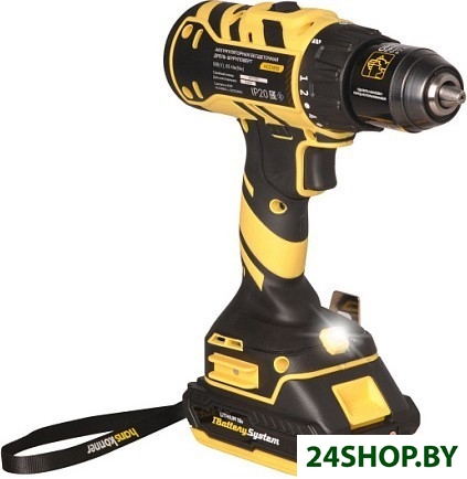 - Комплектация: - дрель-шуруповерт аккумуляторная, - аккумуляторная батарея (2шт, одна подсоединена к шуруповерту), - зарядное устройство, - двойные биты, - USB LED-фонарик, - пластиковый кейс