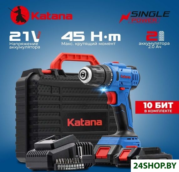 - Комплектация: - Дрель-шуруповерт - 1 шт. - Зарядное устройство для аккумуляторного блока - 1 шт. - Набор бит - 1 шт. - Кейс - 1 шт. - Аккумуляторный блок - 2 шт (2,0 Ач)