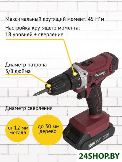 Описание и характеристики Pioneer (бытовая и строительная техника) 2-мя АКБ, кейс, оснастка)