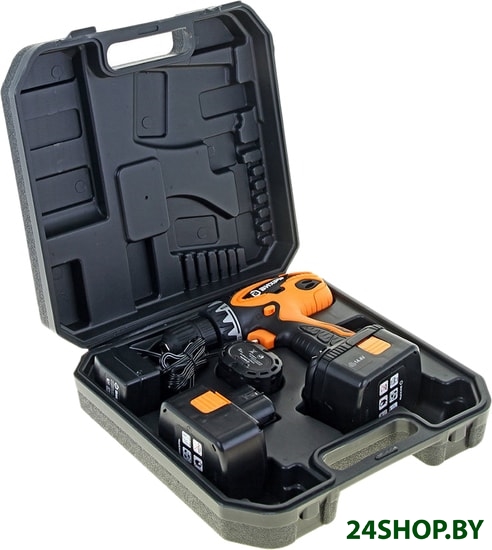 - Комплектация: - Аккумуляторная дрель-шуруповерт с аккумулятором 1шт.- Дополнительный аккумулятор 1 шт.- Зарядное устройство 1 шт.- Паспорт (инструкция) 1 шт.- Кейс 1 шт.