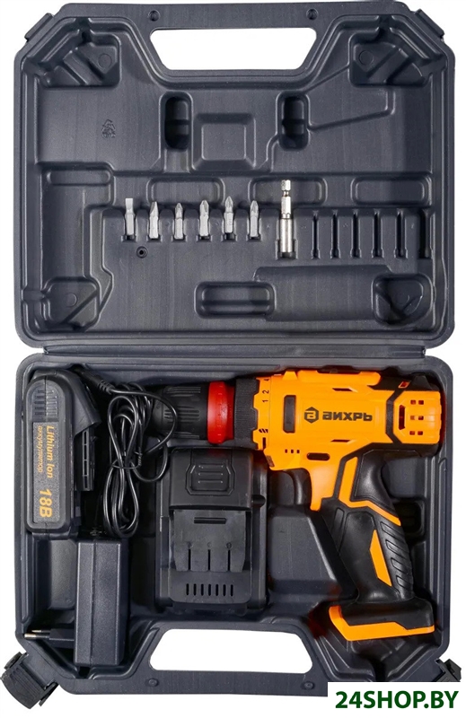 - Комплектация: - Дрель-шуруповерт- 2 аккумулятора- Зарядное устройство- Кейс