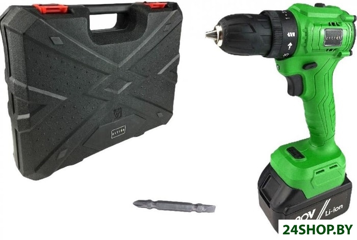 - Комплектация: - Дрель-шуруповерт аккумуляторная;- Литиевый аккумулятор - 1 шт;- Двухсторонняя бита;- Зарядное устройство;- Руководство по эксплуатации;- Кейс пластиковый.