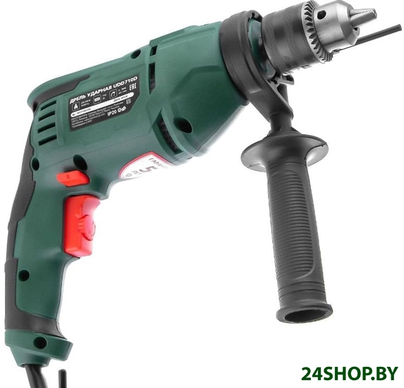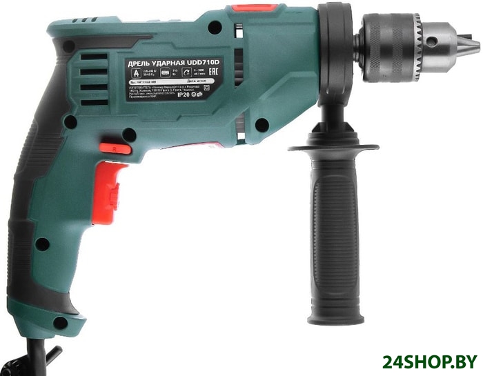 - Комплектация: - Дрель;- Дополнительная рукоятка;- Ограничитель глубины сверления;- Ключ патрона;- Руководство по эксплуатации;- Гарантийный талон;- Упаковка.