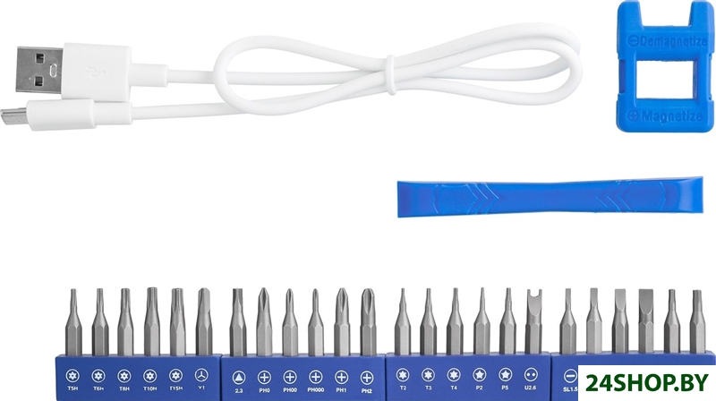 - Комплектация: бита (24 шт.), футляр, кабель (USB Type-C), намагничиватель