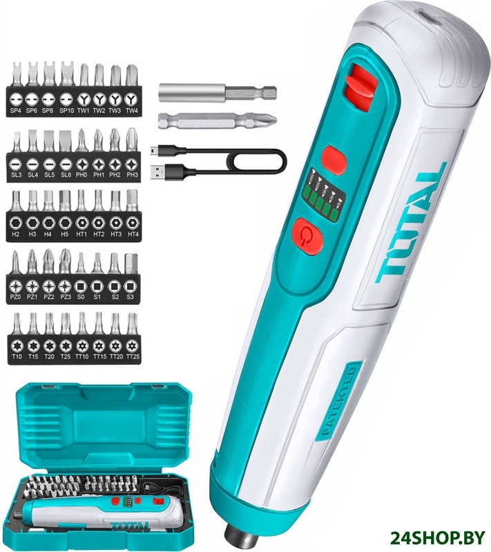 Описание и характеристики Total (электроинструмент) I0403 (с АКБ, набор оснастки)