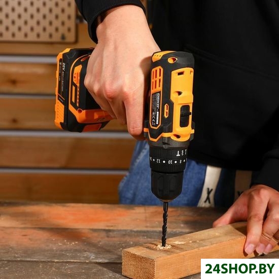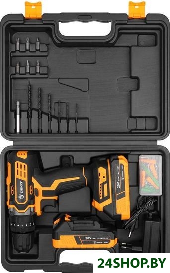 - Комплектация: - Дрель-шуруповерт ударная - 1 шт.- Аккумулятор 2,0 Ач - 2 шт.- Зарядное устройство - 1 шт.- Сверла (2, 2.5, 3, 4, 5, 6 мм) - 6 шт.- Биты (SL4, 6, PH1, 2, PZ1, 2) - 6 шт.- Магнитный удлинитель (60 мм) - 1 шт.- Крепеж - 50 шт.- Инструкция- Кейс