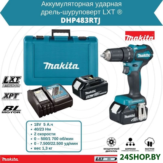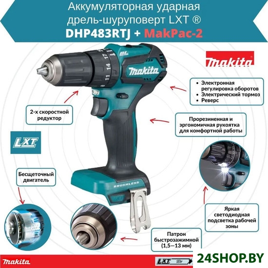 Описание и характеристики Makita DHP483RTJ (с 2-мя АКБ, кейс)