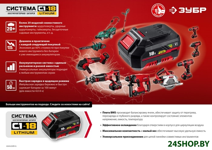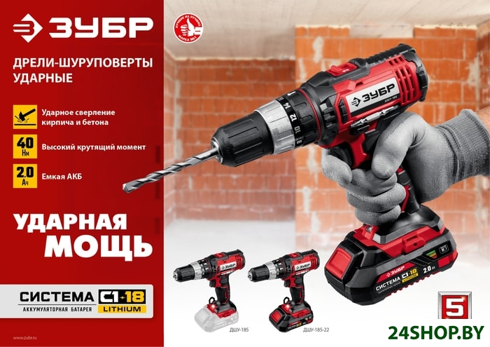 Описание и характеристики ЗУБР ДШУ-185-22 (2 АКБ, кейс)
